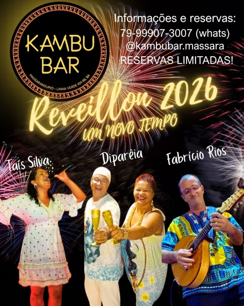 Com apresentações de Taís Silva, Fabrício Rios e Diparêia, o Réveillon 2026 – Um Novo Tempo convida todos a celebrar a chegada do ano em grande estilo, com aquele toque afro-baiano que é marca registrada do bar.